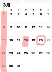 3月の店休日
